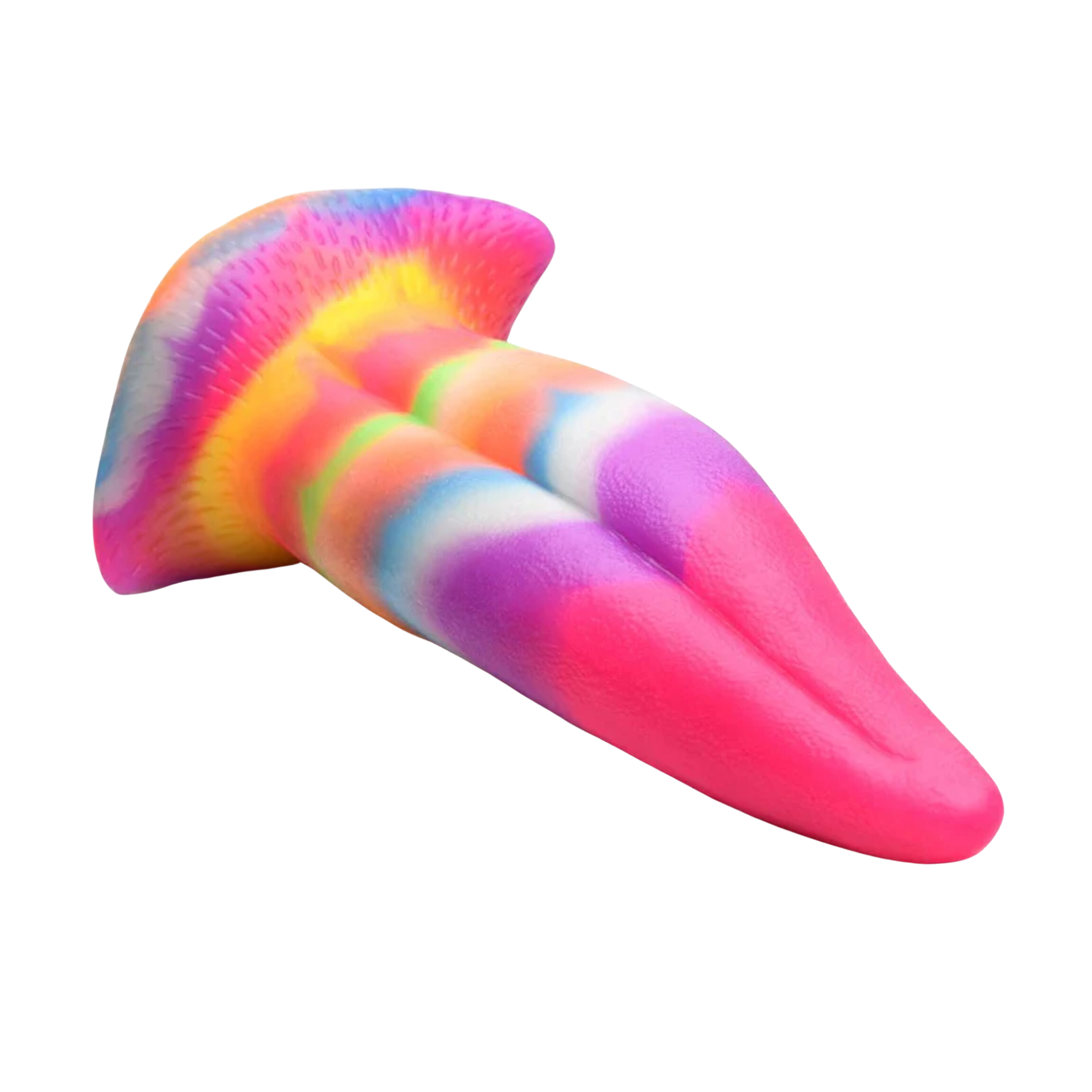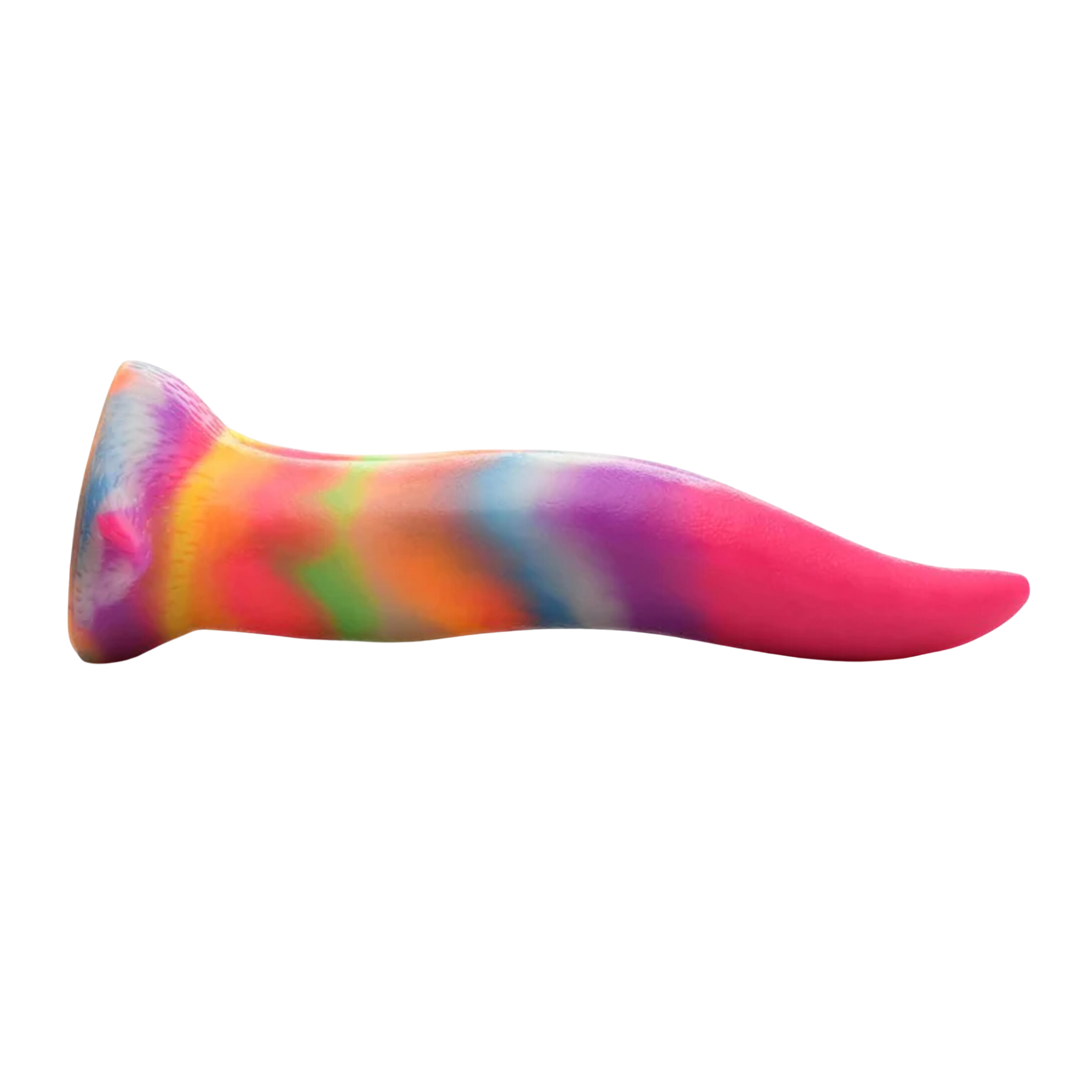 Ajoute de la nouveauté à ta collection avec ce dildo langue de licorne aux couleurs vives qui brillent dans le noir! La langue est sinueusement courbée avec une pointe effilée qui se glisse directement dans les trous pour un plaisir profond et unique.